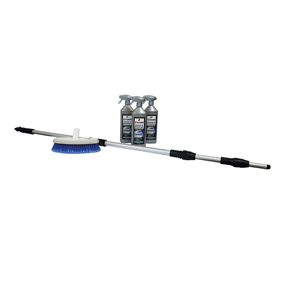 - Rilsan bootborstel: Een professionele borstel met hoogwaardige Rilsan-haren die vuil effectief verwijderen zonder de gelcoat of lak te krassen. De borstel is afgewerkt met een rubberen beschermrand, zodat je zorgeloos langs ruiten, beslag of stootlijsten kunt werken zonder beschadigingen achter te laten.