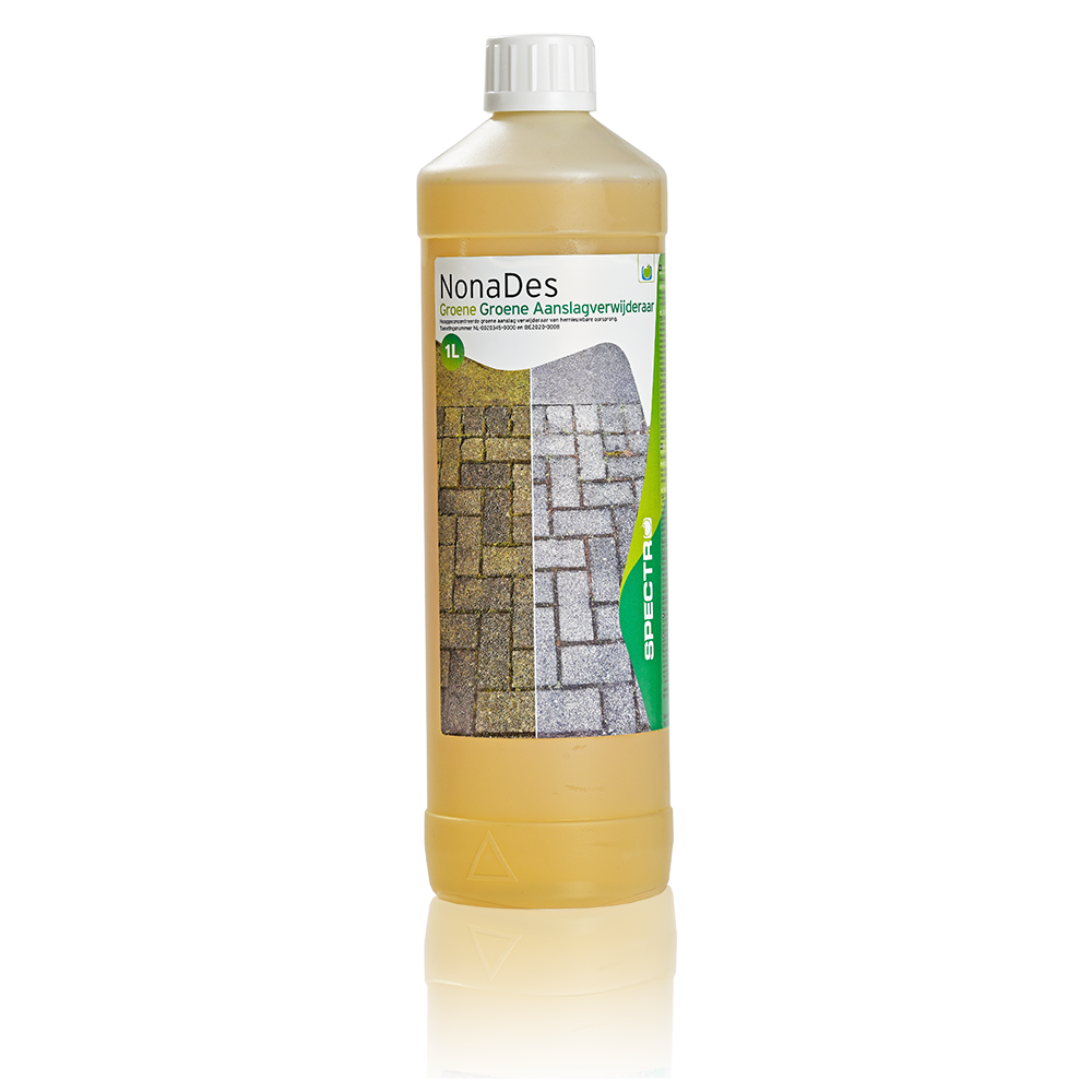 NonaDes is een sterk geconcentreerd, mildzuur product van hernieuwbare en natuurlijke oorsprong dat toch snel en zeer effectief groene aanslag bestrijdt van de meeste oppervlaktes. Zonder schrobben eenvoudig, snel en duurzaam groene aanslag verwijderen van bestrating, balkon, muren, dak, meubels, schutting etc. Zorgt er ook voor dat groene aanslag niet snel terugkeert.